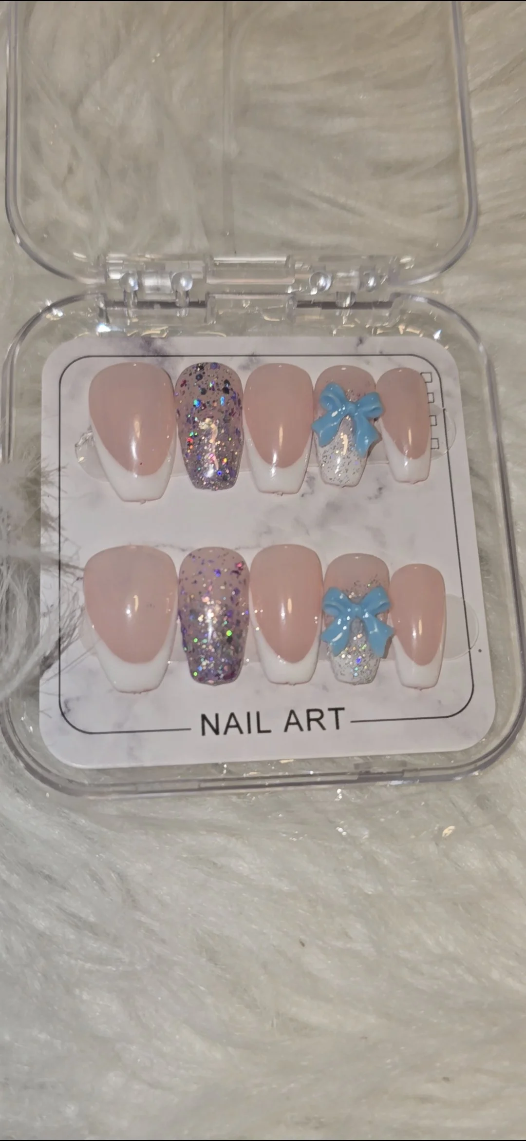 Glue,sticky tabs, mini file and buffer and cuticle pusher included