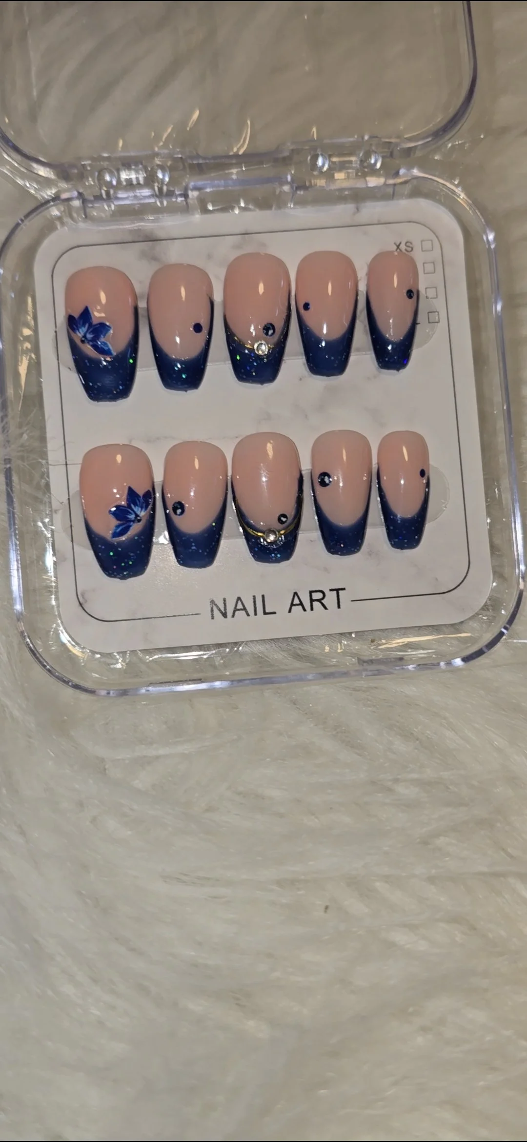 Glue,sticky tabs, mini file and buffer and cuticle pusher included