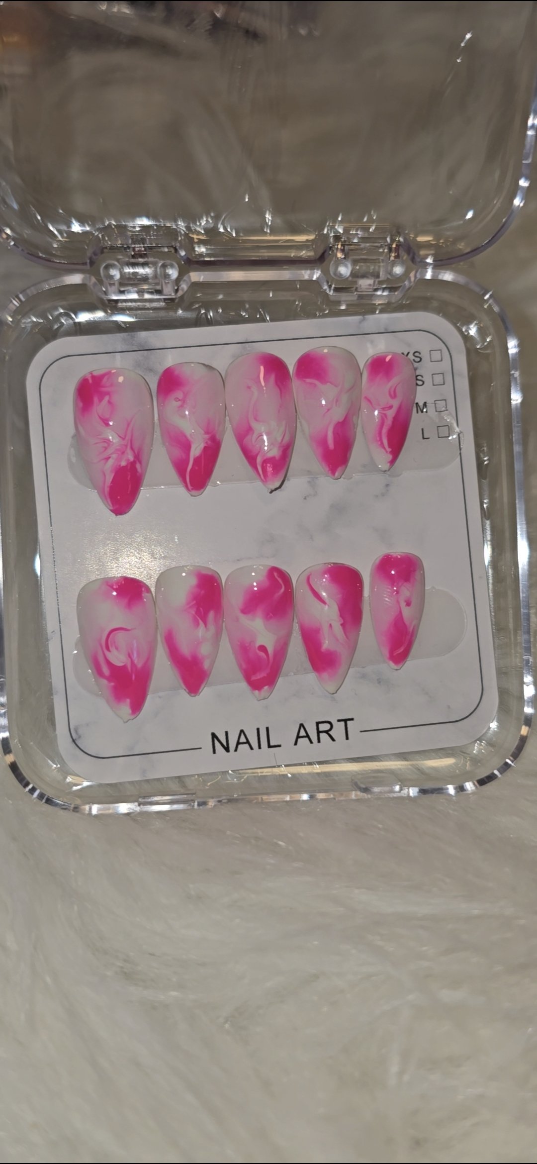 Glue,sticky tabs, mini file and buffer and cuticle pusher included