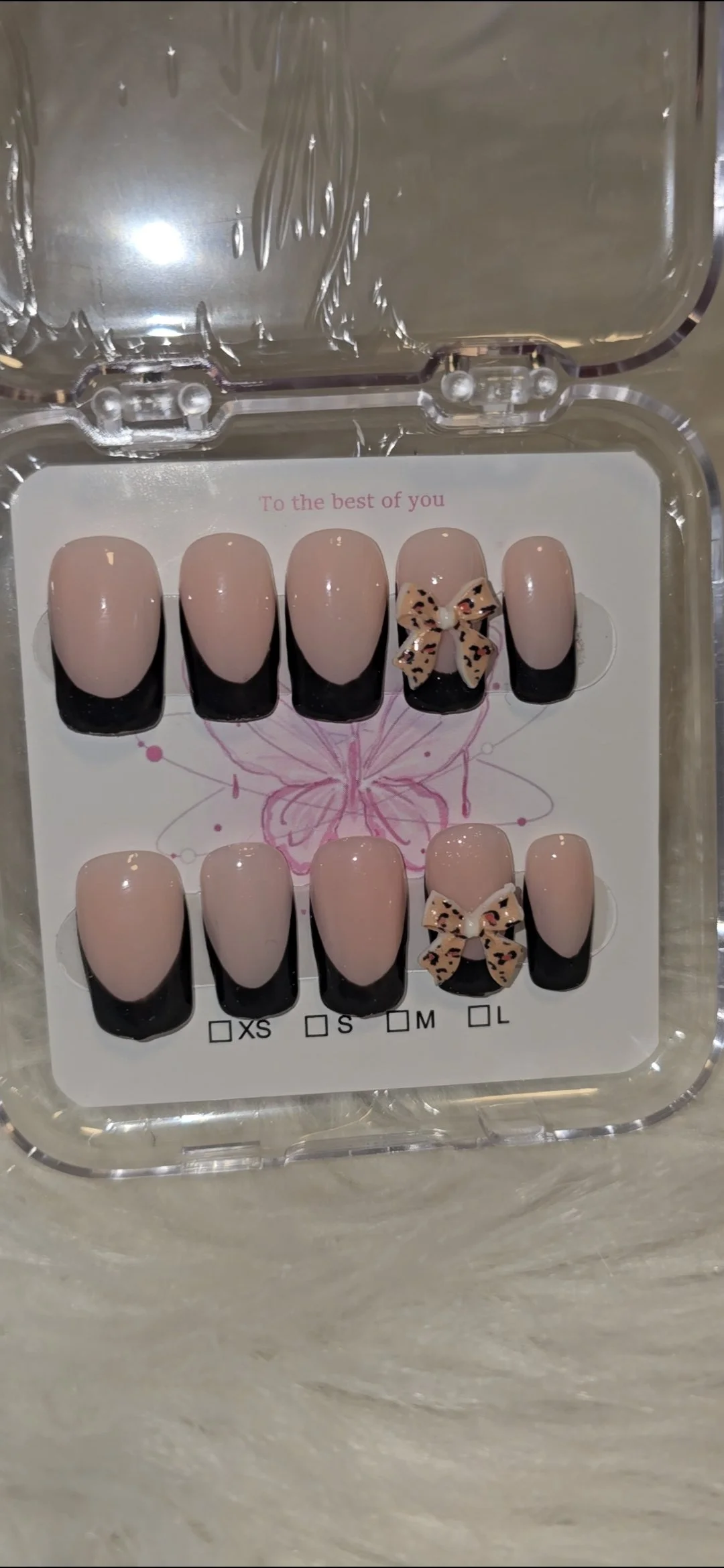 Glue,sticky tabs, mini file and buffer and cuticle pusher included