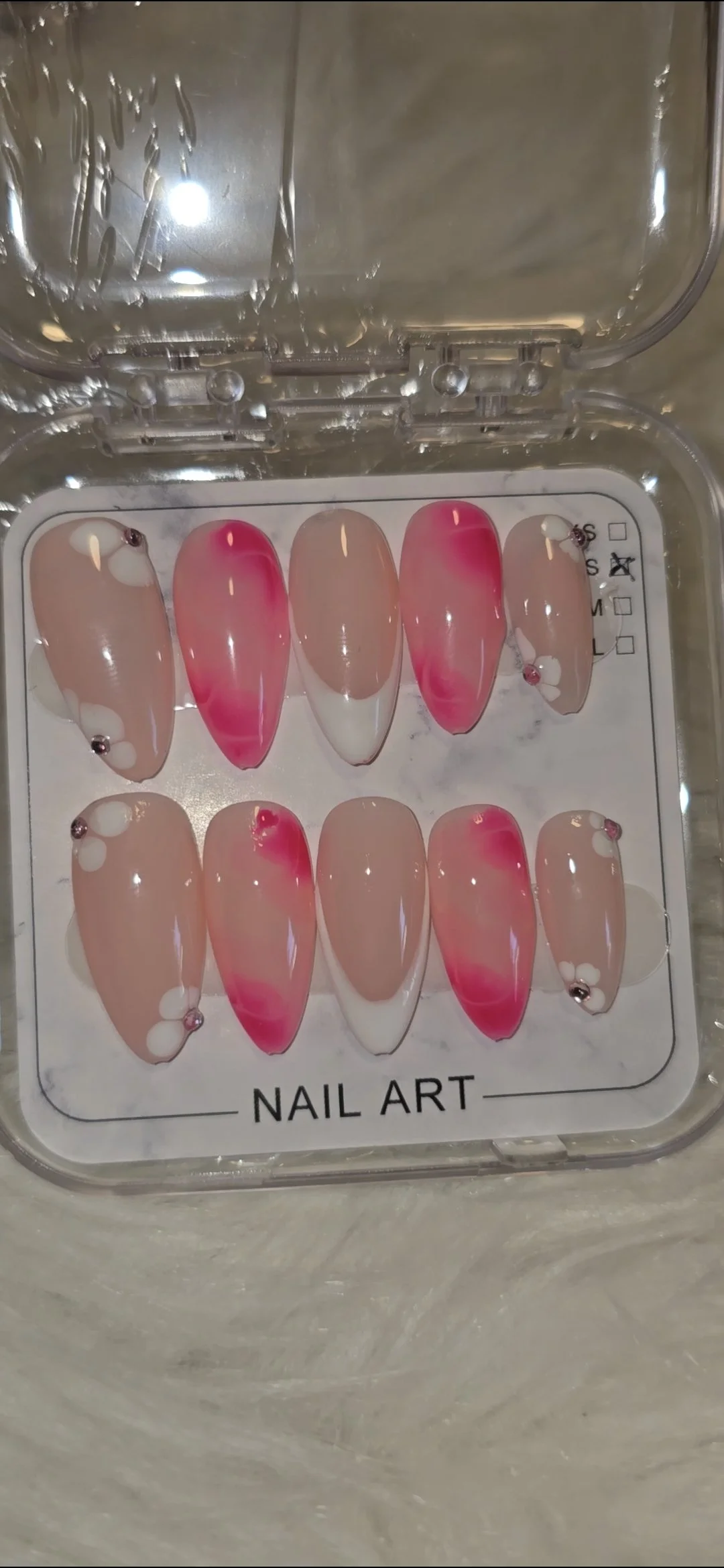Glue,sticky tabs, mini file and buffer and cuticle pusher included